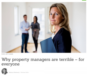 The worst of these stories had to go to Rebecca Stevenson who’s article ‘Why Property Managers are terrible for everyone’ was appalling and had many inaccuracies. I don’t envisage Ms Stevenson will be winning any Pulitzer Prizes for this article.