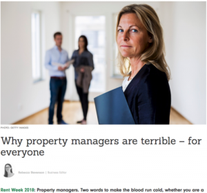 However, some of the comments made go too far and one article, in particular, is nothing more than a sensationalistic opinion piece by a Business Editor who clearly has it in for Property Managers stating that they make her ‘blood run cold’. Her article highlights that in her opinion, many Property Managers are nothing more than money hungry corrupt bullies who deliberately drive up rents.